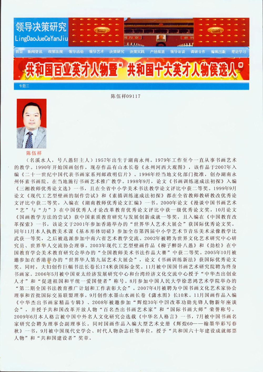 入选共和国百业英才人物暨“共和国十大英才人物候选人”