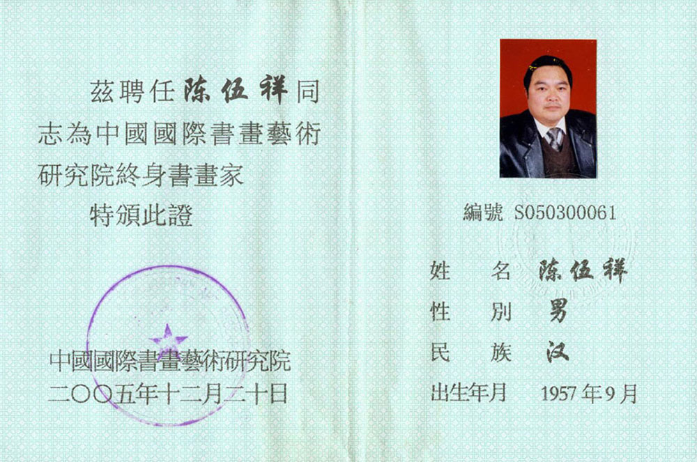 2005年12月被聘为“中国国际书画艺术研究院”终身书画家