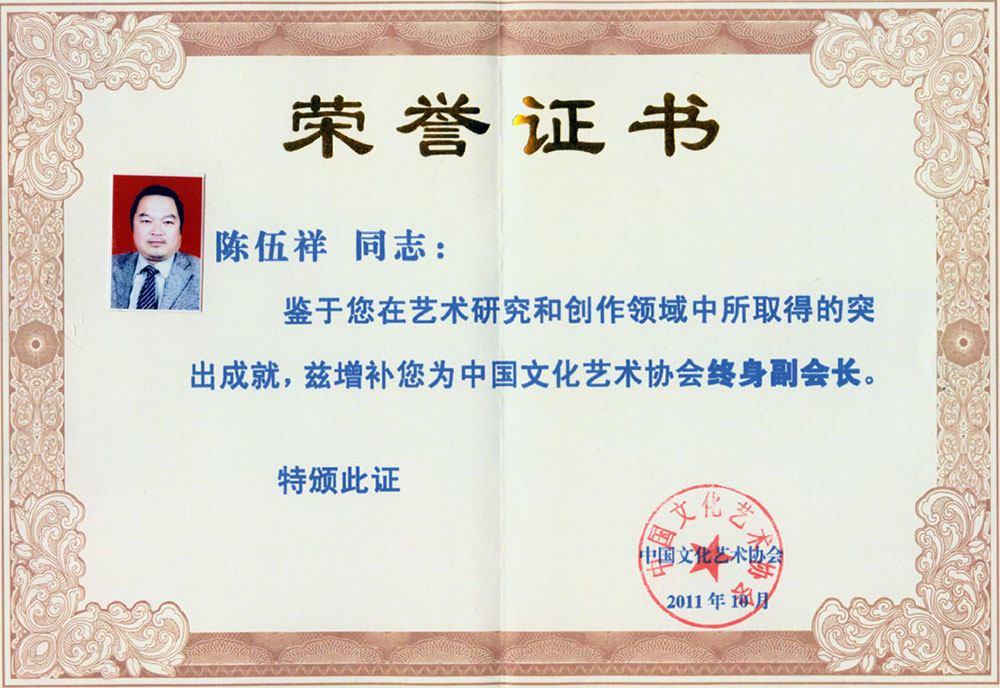 2011年10月被聘为“中国文化艺术协会”终身副会长