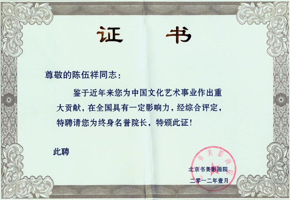 2012年1月被聘为“北京书美影画院”终身名誉院长