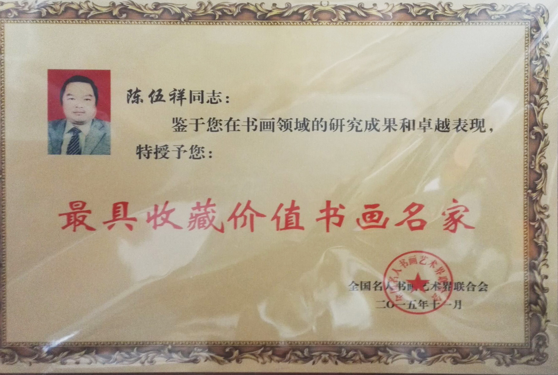 2015年11月被评为“最具收藏价值书画名家”。