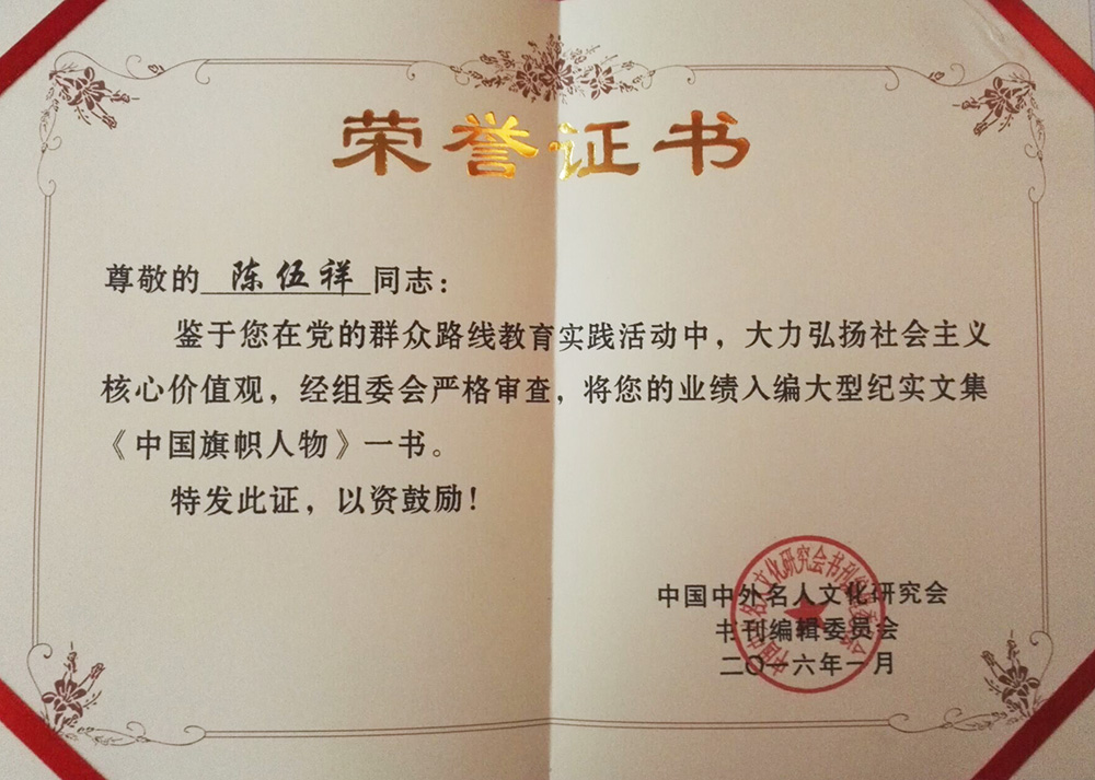 2016年1月入编《中国旗帜人物》